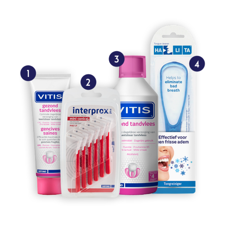Krijg 15% korting op Vitis mondverzorging en Halita tongreinigers. Voor een stralende glimlach en een frisse adem. Mis deze kans niet om je mondverzorging te verbeteren!
