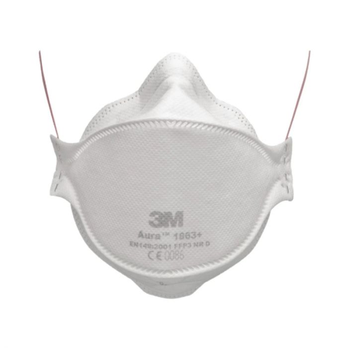 3M Aura 1863 medisch ademhalingsbeschermingsmasker, is ons opvouwbare 3-panelen masker met een voorgevormd neusstuk. Dit FFP3 masker heeft een lichtgewicht design met laag profiel.