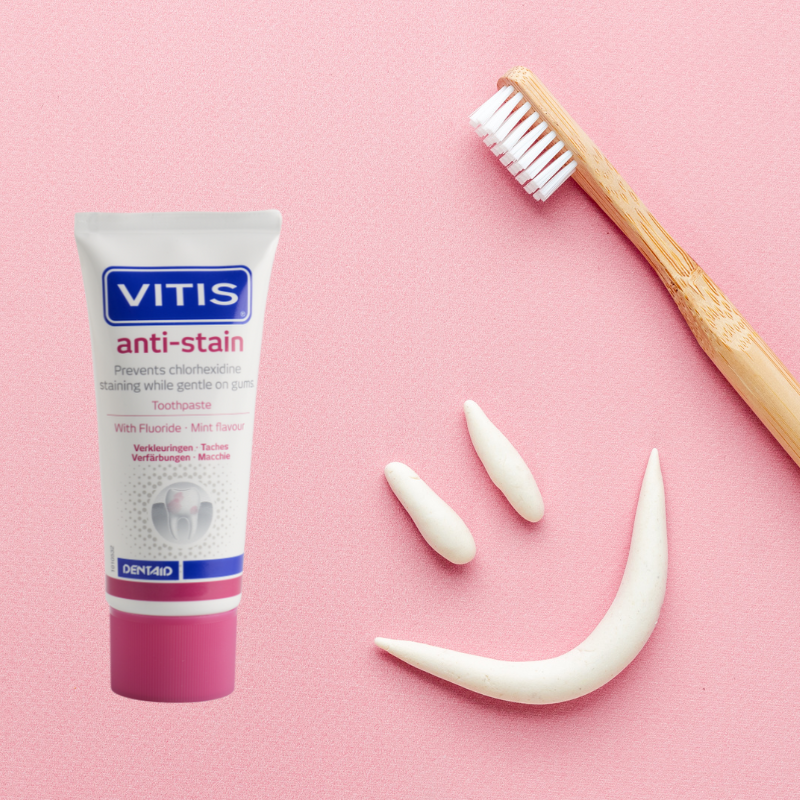 Het gebruik van een chloorhexidine-mondspoeling wordt vaak geadviseerd door tandartsen en mondhygiënisten bij tandvleesproblemen, na tandheelkundige ingrepen of om bacteriën in de mond effectief te bestrijden. Hoewel chloorhexidine zeer effectief is, kan het bij langdurig gebruik leiden tot een veelvoorkomende bijwerking: verkleuring van tanden, kiezen en de tong. Gelukkig is er een eenvoudige oplossing om dit te voorkomen: VITIS Anti-Stain tandpasta.
