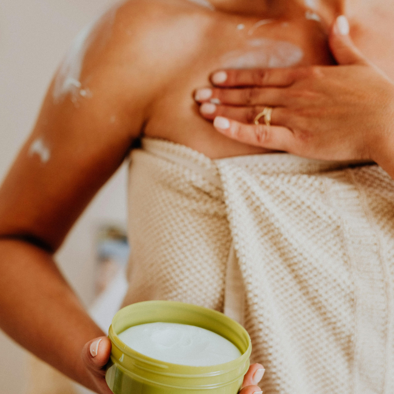 - Smeer binnen 3 minuten een rijke crème of bodylotion op armen, benen en rug.