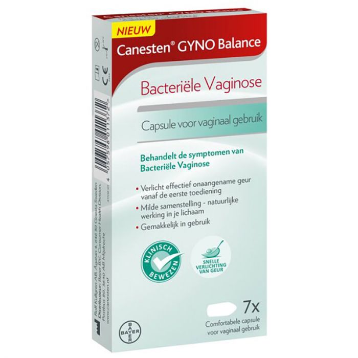 Canesten Gyno Balance capsules zijn een klinisch bewezen effectieve behandeling bij bacteriële vaginose. Breng de capsule 7 dagen achter elkaar inwendig in, ter behandeling van de symptomen. De capsules van Canesten Gyno Balance zijn gevuld met een gel, die inwendig vrijkomt en zo zijn werk kan doen. Geen gedoe, makkelijk in te brengen, milde samenstelling en effectief om de symptomen te verlichten.