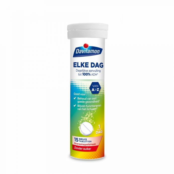 Davitamon Elke Dag Bruistabletten is een dagelijkse aanvulling van vitamines en mineralen. Dit zorgt voor het goed functioneren van het lichaam en het behoud van een goede gezondheid