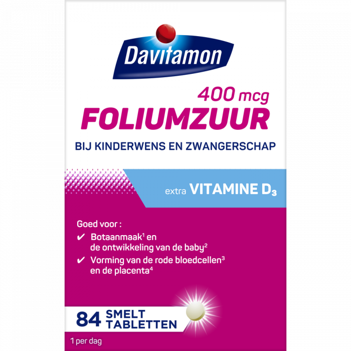 Davitamon Foliumzuur met Vitamine D3 is speciaal ontwikkeld voor vrouwen die zwanger willen worden of zwanger zijn en voorziet in de dagelijkse aanbevolen hoeveelheid foliumzuur en vitamine D3.