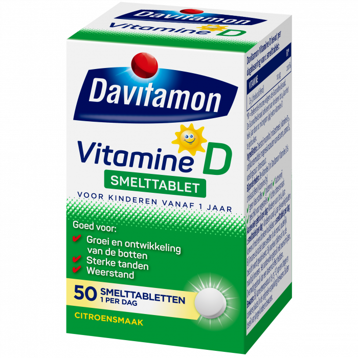 Davitamon Vitamine D Kind Smelttabletten ondersteunen de groei van sterke botten en tanden bij kinderen vanaf 1 jaar.
