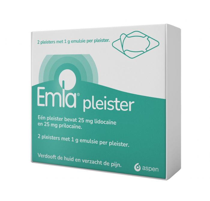 Emla pleister verdooft de huid en verzacht de pijn. Zie je