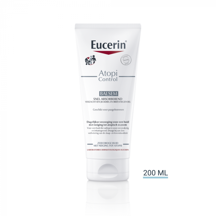 Eucerin AtopiControl Balsem is een snel absorberende bodylotion voor de droge tot zeer droge huid. Het verlicht een jeukerig gevoel van de geïrriteerde huid ter bevordering van de slaap- en levenskwaliteit.
