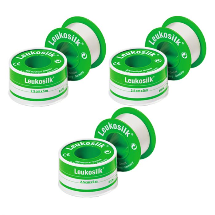 Leukosilk hechtpleister kunstzijde 2,5cmx5m wit 3 stuks