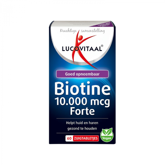 Lucovitaal Biotine 10.000 mcg Forte ondersteunt huid, haar en energie met een heerlijke kersensmaak. Geschikt voor dagelijks gebruik.