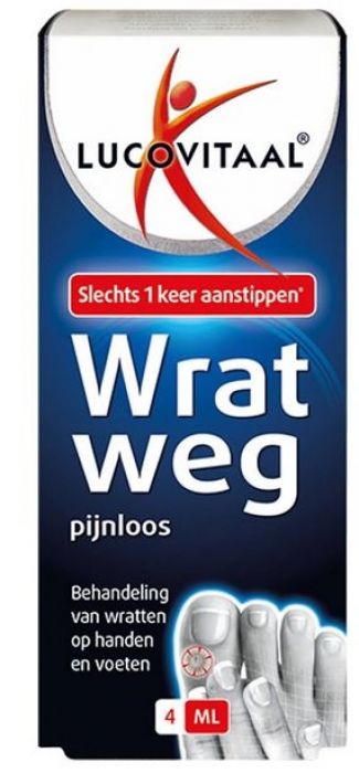 Last van een wrat? Gebruik dan Lucovitaal Wrat weg voor een pijnloze en snelle behandeling voor het verwijderen van je wratten. Lucovitaal Wrat Weg is een medisch hulpmiddel om gewone wratten van je handen en voeten te verwijderen. Voor een behandeling hoeft de wrat slechts 1 keer door Lucovitaal Wrat Weg aangestipt te worden. Bij grotere en dikkere wratten kan het noodzakelijk zijn om de behandeling na een week te herhalen.