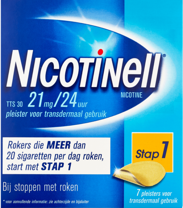 Nicotinell behoren tot de Nicotine vervangende middelen. Deze pleisters bevatten 21 mg nicotine. De Nicotine wordt gedurende 24 uur gelijkmatig afgegeven. Daardoor verminderd het de sterke behoefte naar een sigaret gedurende de hele dag.