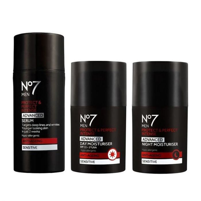 No7 Men Protect & Perfect Intense Advanced Serum 30ml: Als de huid van de man ouder wordt, verzwakt de structuur. Wat resulteert in lijntjes, rimpels en een doffe uitstraling. De No7 Mannenlijn bevat het gerenommeerde Protect & Perfect Intense-technologie voor nog betere anti-ageing resultaten: