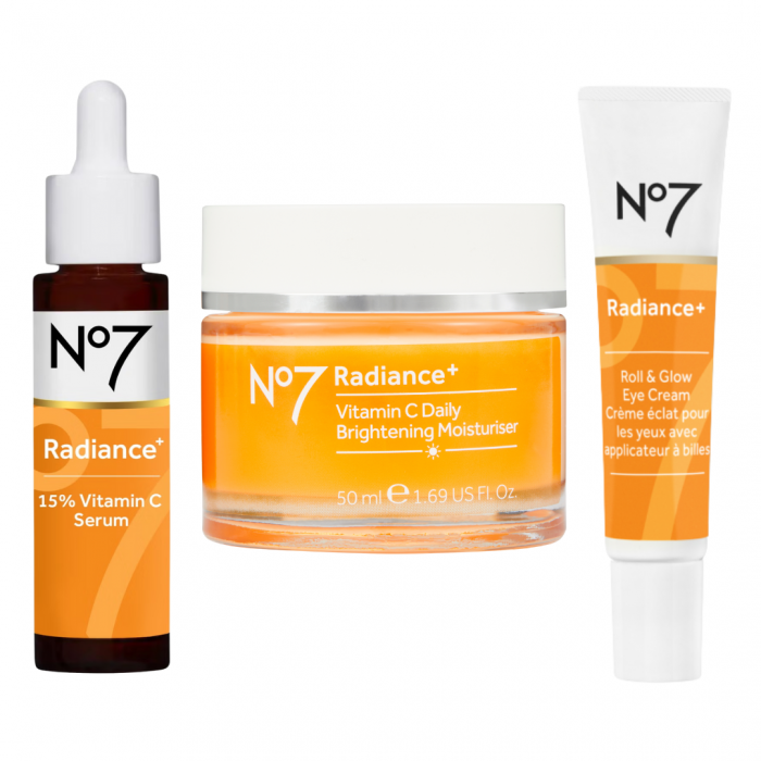 No7 Radiance+ 15% Vitamin C Serum 25ml: Is een snel absorberende formule, verrijkt met 15% vitamine C-serum. De formule doet je teint herleven door de verschijning van een ongelijkmatige teint of pigmentatie te verminderen en een doffe huid te verlichten. Terwijl je geniet van de zoete citrusaroma en de lichtgewicht geltextuur moeiteloos over je huid aanbrengt, zorgt de concentratie vitamine C (15%) voor een stralende huid in slechts 1 dag.