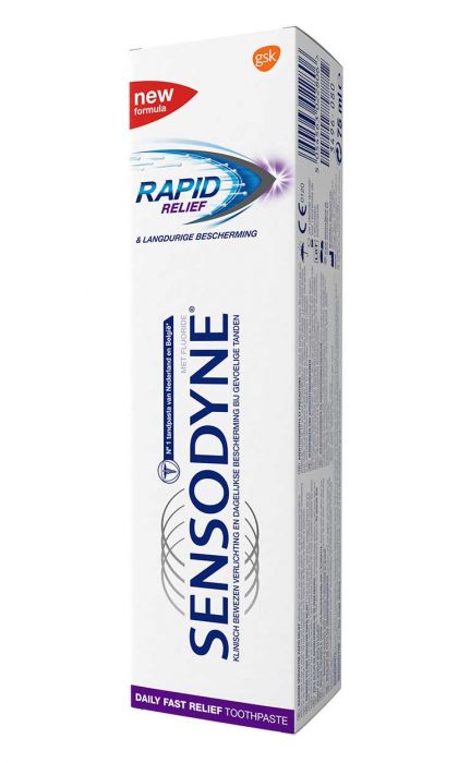 Sensodyne Rapid Relief biedt klinisch bewezen snelle verlichting voor gevoelige tanden. Voor een snelle verlichting binnen 60 seconden*, wrijf je een kleine hoeveelheid tandpasta rond de tandhals van de gevoelige tanden gedurende één minuut. Sensodyne Rapid Relief legt een beschermlaag aan rond je tandhalzen en helpt zo beschermen.