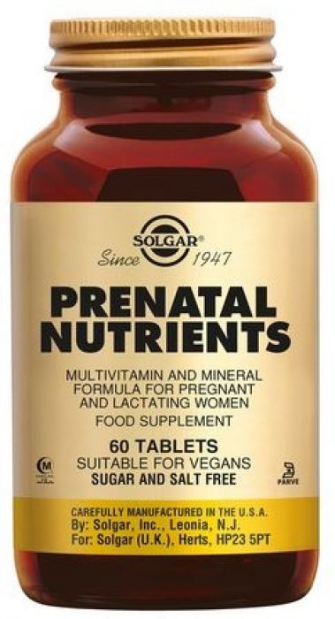 Solgar Prenatal Nutrients bevat voor vrouwen die zwanger willen worden, zwanger zijn of borstvoeding geven, een dagelijkse aanvulling van vitaminen en mineralen, waaronder foliumzuur.
