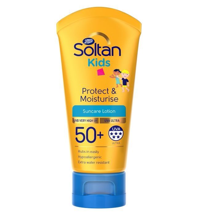 De Soltan Zonbescherming Kids Protect & Moisturise is een lotion met de hoogst mogelijke UVA-bescherming: 5 sterren en een SPF50+ bescherming. Alle Soltan producten zijn deskundig samengesteld door de experts van Soltan en bevatten een uniek anti-oxidanten complex. Door deze toevoeging beschermt én hydrateert de lotion en helpt deze bij de bescherming tegen huidschade op de korte en de lange termijn. Het product trekt snel in, voelt niet vettig aan, is waterbestendig en verstopt de poriën niet. Daarnaast is dit product dermatologisch getest en hypoallergeen, dus geschikt voor alle huidtypen.
