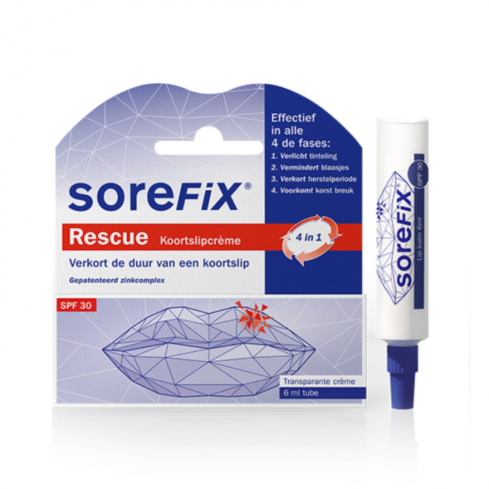 Sorefix Koortslipcrème Rescue SPF30 is ideaal voor volwassenen en kinderen vanaf 4 jaar om koortslip symptomen te verlichten en herstel te versnellen.