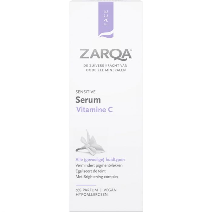 ZARQA Serum Vitamine C met mineralencomplex biedt een dubbele werking. Het helpt bij het voorkomen van de vorming van pigmentvlekken en vermindert tegelijkertijd zichtbare pigmentvlekken op de huid. Vitamine C is een krachtige antioxidant die de huidteint verheldert en tekenen van veroudering vermindert. Het Brightening-complex is een zeer gezuiverd plantaardig extract dat donkere vlekken en een ongelijkmatige teint vermindert. Het serum heeft een lichte textuur die snel in de diepere huidlagen doordringt. Na gebruik kan de huid de actieve ingrediënten van verzorgende crèmes optimaal absorberen.